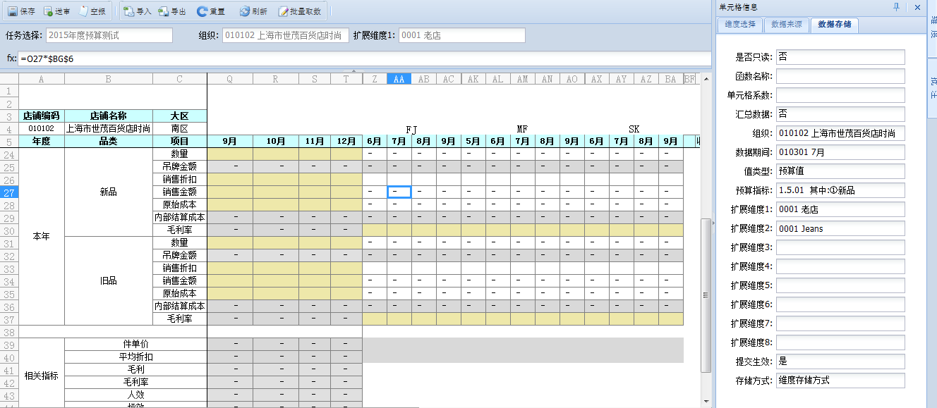 以品牌条线预算为例,按照JS、MF、SHAKE分别对其销售进行分类,可以实现跨地区、跨门店的汇任意汇总查询。